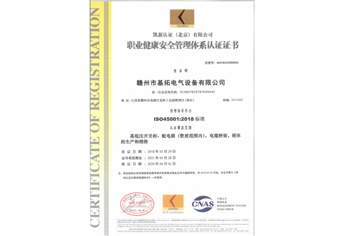 職業(yè)健康安全管理體系認(rèn)證證書(shū)