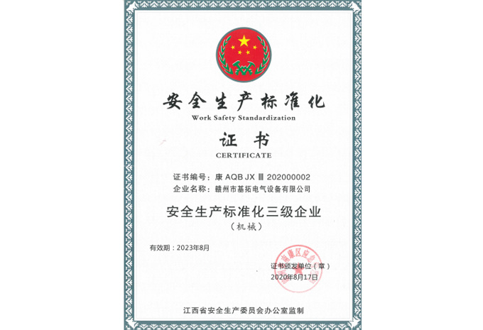 安全生產(chǎn)標(biāo)準(zhǔn)化證書(shū)
