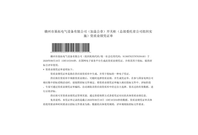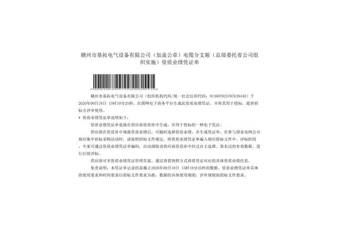 國(guó)家電網(wǎng)資質(zhì)能力業(yè)績(jī)證明文件(低壓電纜分支箱)
