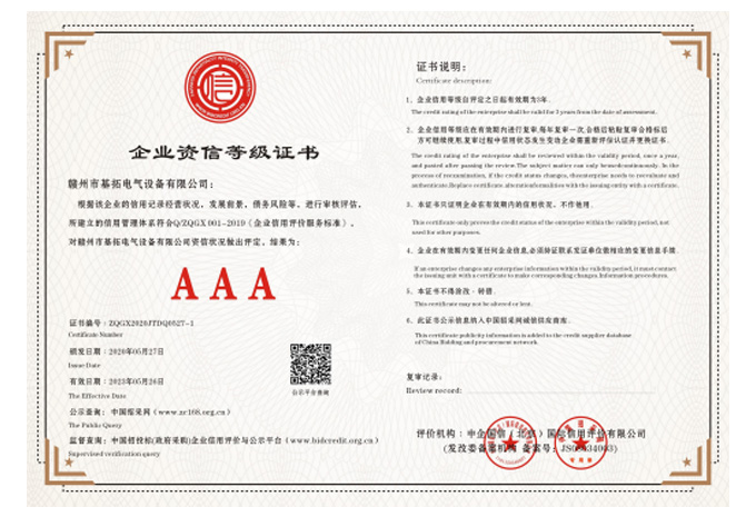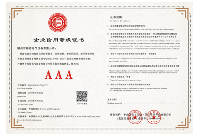 企業(yè)信用等級(jí)AAA級(jí)證書(shū)