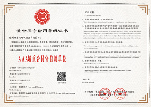 重合同守信用等級(jí)證書(shū)AAA級(jí)重合同守信用單位