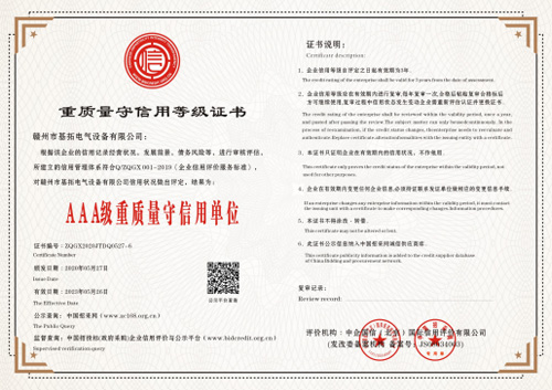 重質(zhì)量守信用等級(jí)證書(shū)AAA級(jí)重質(zhì)量守信用單位